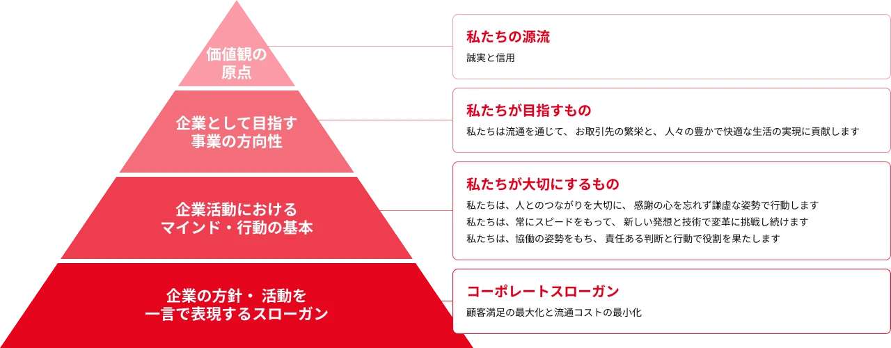これまで培ってきた「信頼」によるつながりを大切に、相手を敬い礼儀を重んじ、全ての人に対して感謝の心を持って働くこと。何があっても立ち止まらず、スピード感をもって挑戦する姿勢を大切にすること。そして、チームワークを大切にする協働の姿勢を持つと同時に、それぞれが自主的に責任ある行動を実践すること。