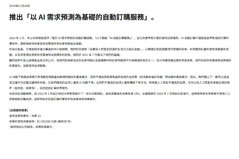 AI 需求預測減少食品損失「自動訂貨服務」